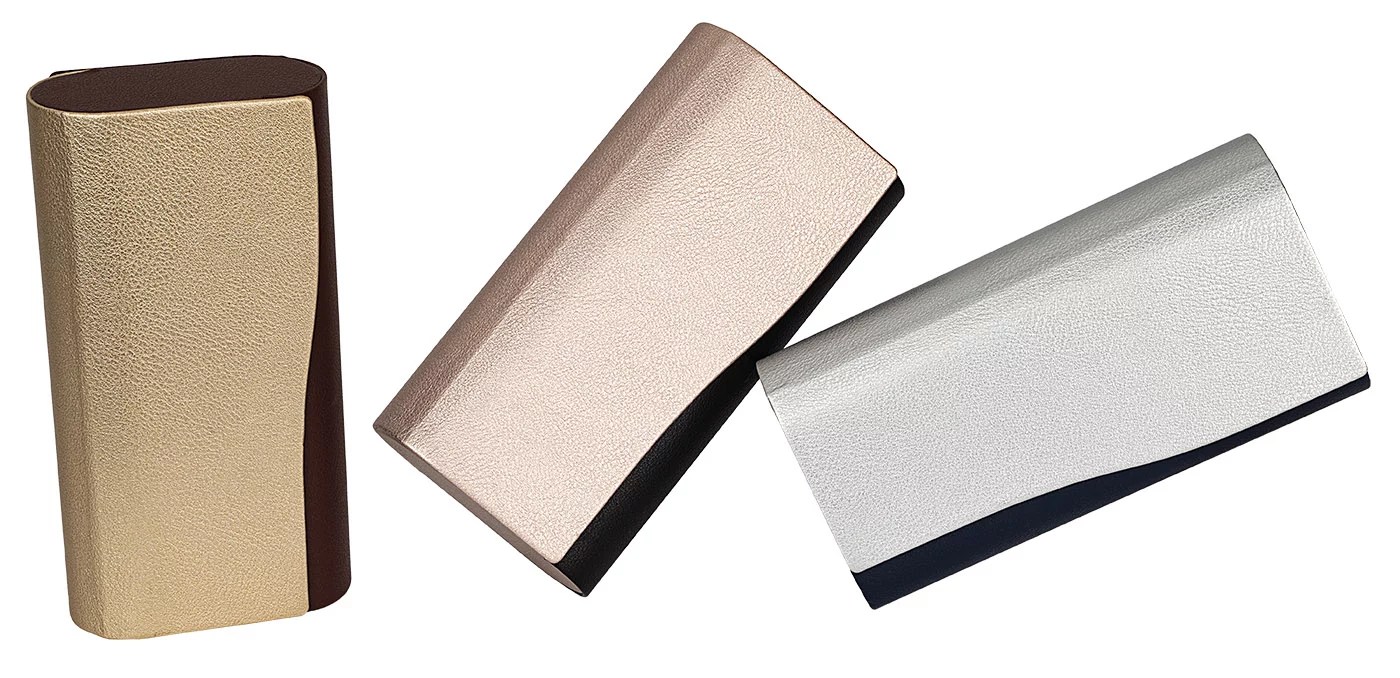 praktisches Doppeletui mit Magnetverschluss, in drei Metallic-Effekt-Farbkombinationen erhältlich